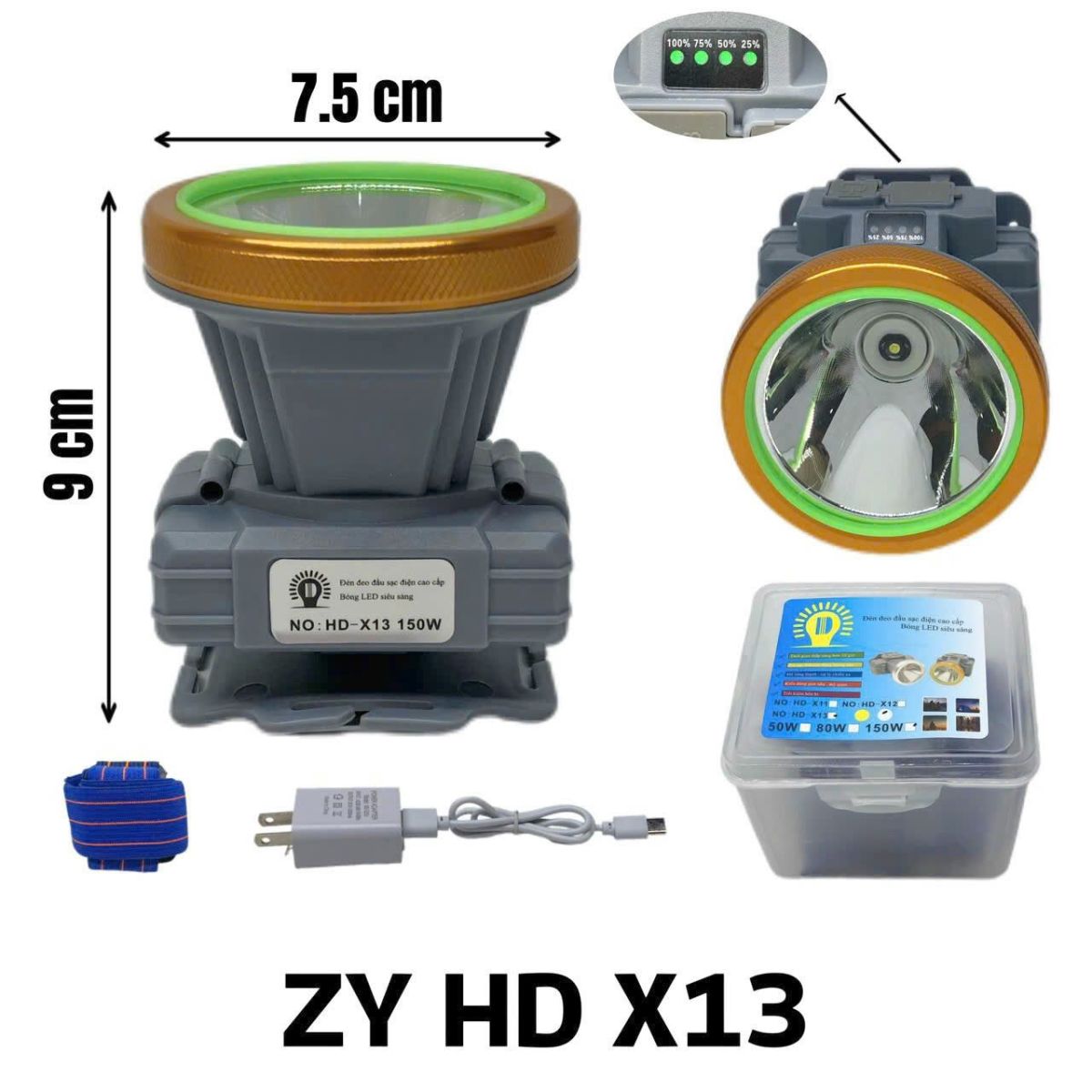 ĐÈN PIN ĐỘI ĐẦU SIÊU SÁNG 150W ZY HD X13