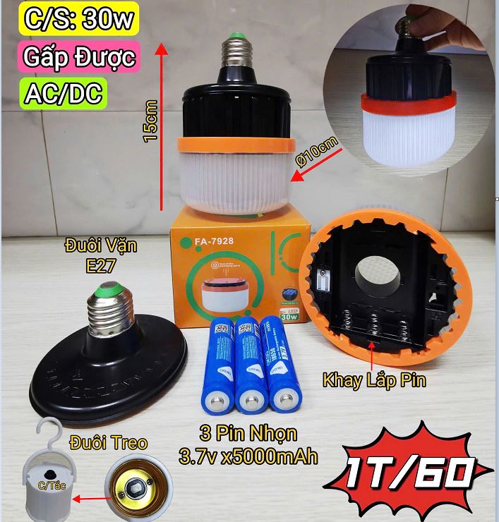 ĐÈN TÍCH ĐIỆN 2 TRONG 1 PIN RỜI FA 7928