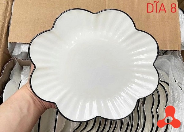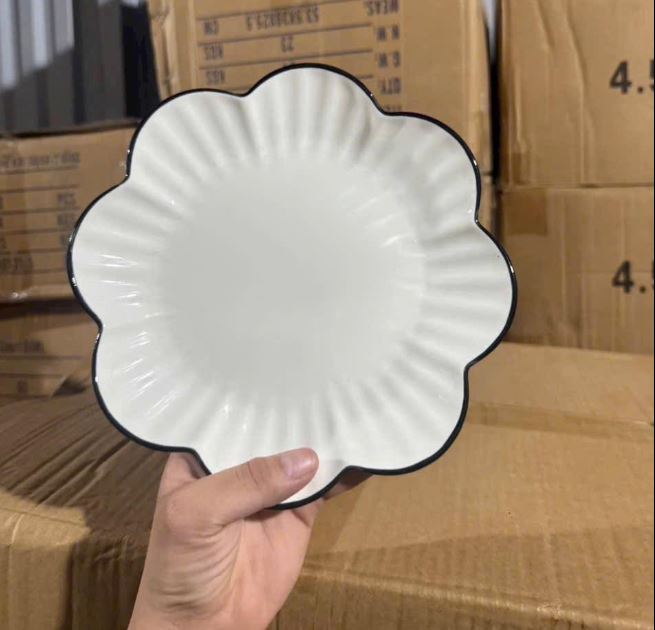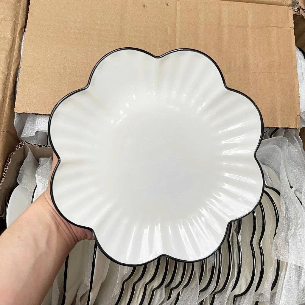ĐĨA SỨ BÔNG HOA MAI SỌC VIỀN ĐEN SIZE 8 - 20CM (T60)