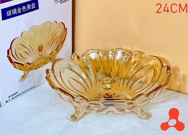 ĐĨA THỦY TINH 3 CHÂN 24CM MÀU HỔ PHÁCH (T12)