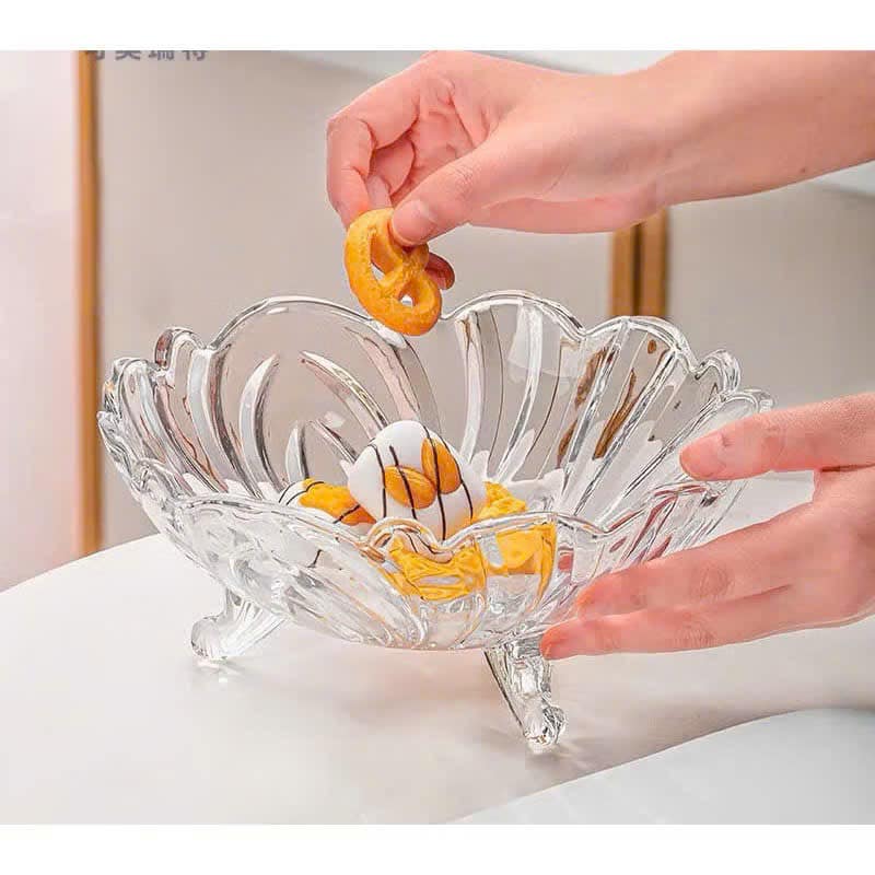 ĐĨA THỦY TINH 3 CHÂN CAO CẤP ĐỰNG TRÁI CÂY (T18)