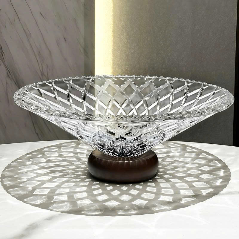 ĐĨA THỦY TINH CHÂN GỖ SANG TRỌNG MD- 002