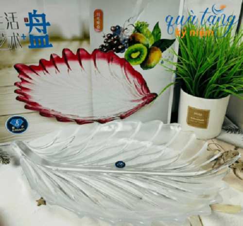 • ĐĨA THUỶ TINH CHIẾC LÁ MÀU TRẮNG 41 x 29cm