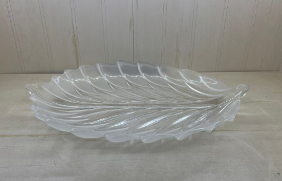ĐĨA THUỶ TINH CHIẾC LÁ MÀU TRẮNG 41 x 29cm