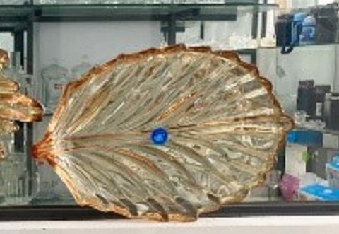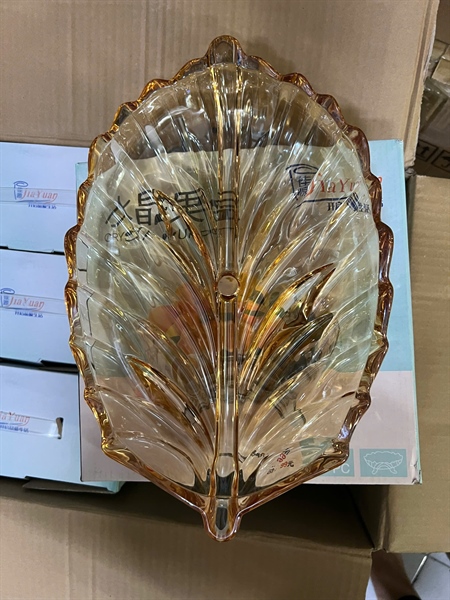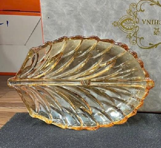 ĐĨA THUỶ TINH CHIẾC LÁ MÀU VÀNG 30 x 20cm