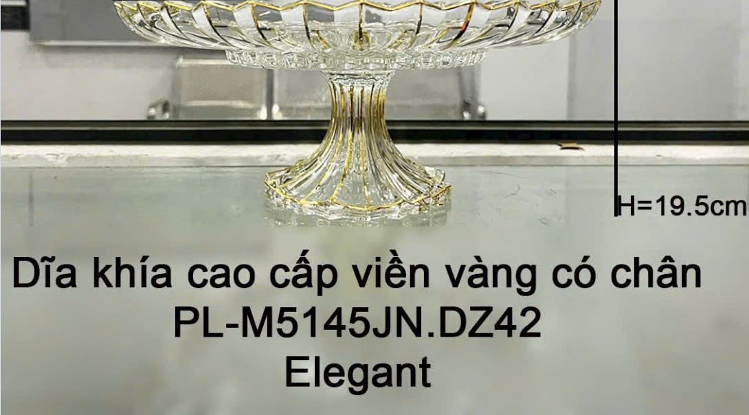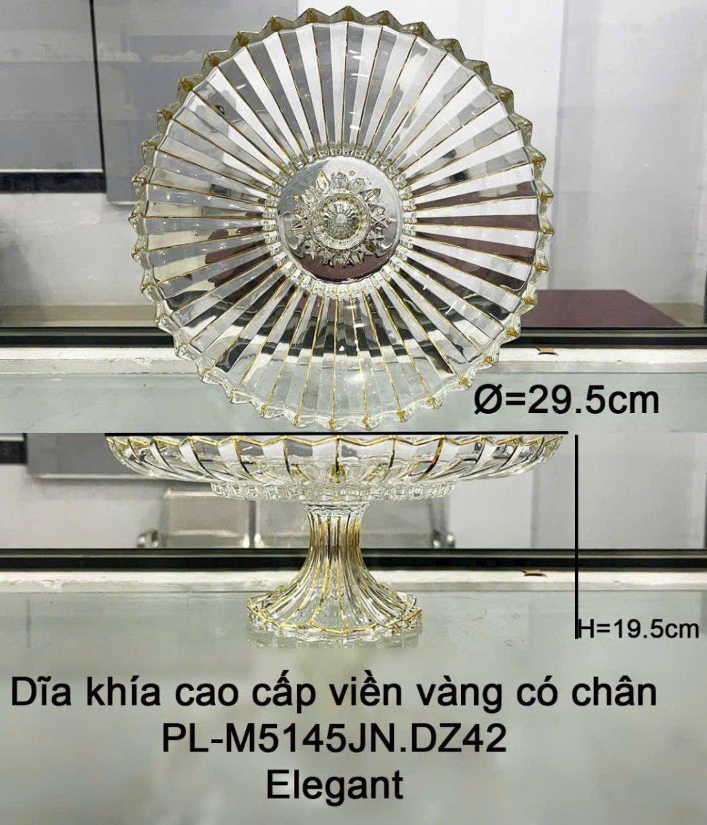 ĐĨA THUỶ TINH KHÍA VIỀN VÀNG CÓ CHÂN CAO CẤP