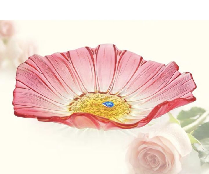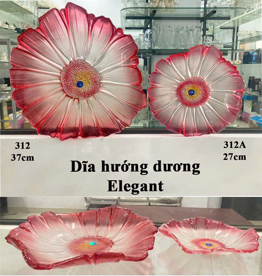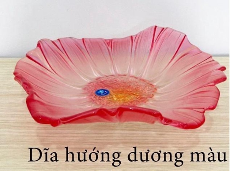 ĐĨA THỦY TINH MÀU 37CM HOẠ TIẾT HƯỚNG DƯƠNG
