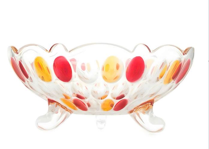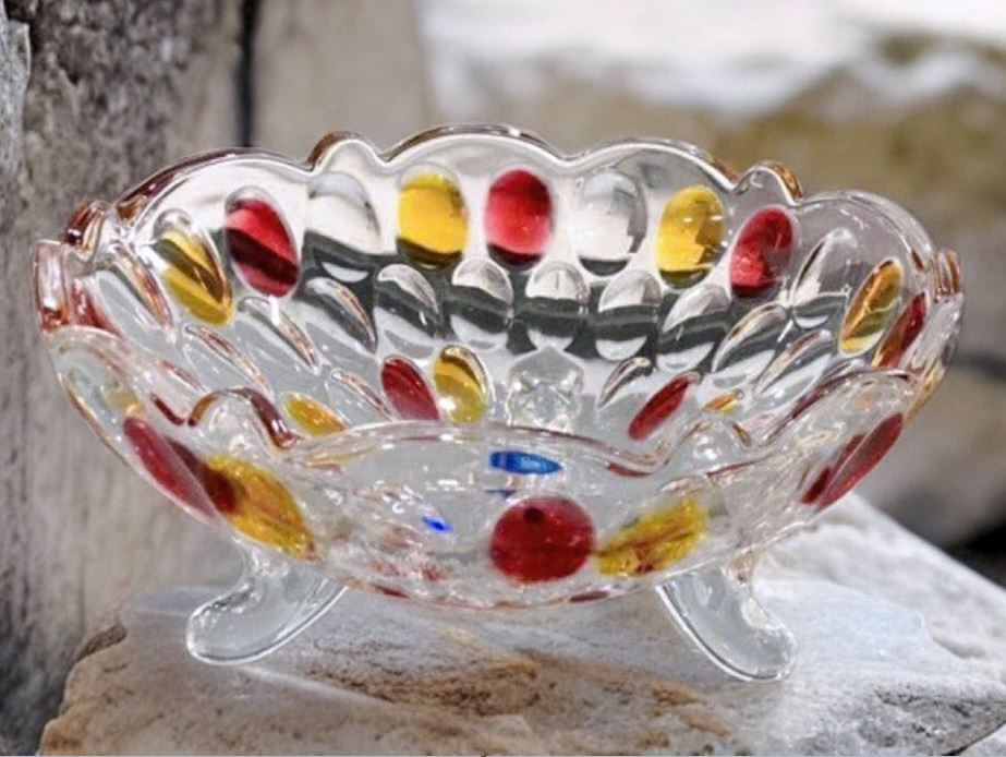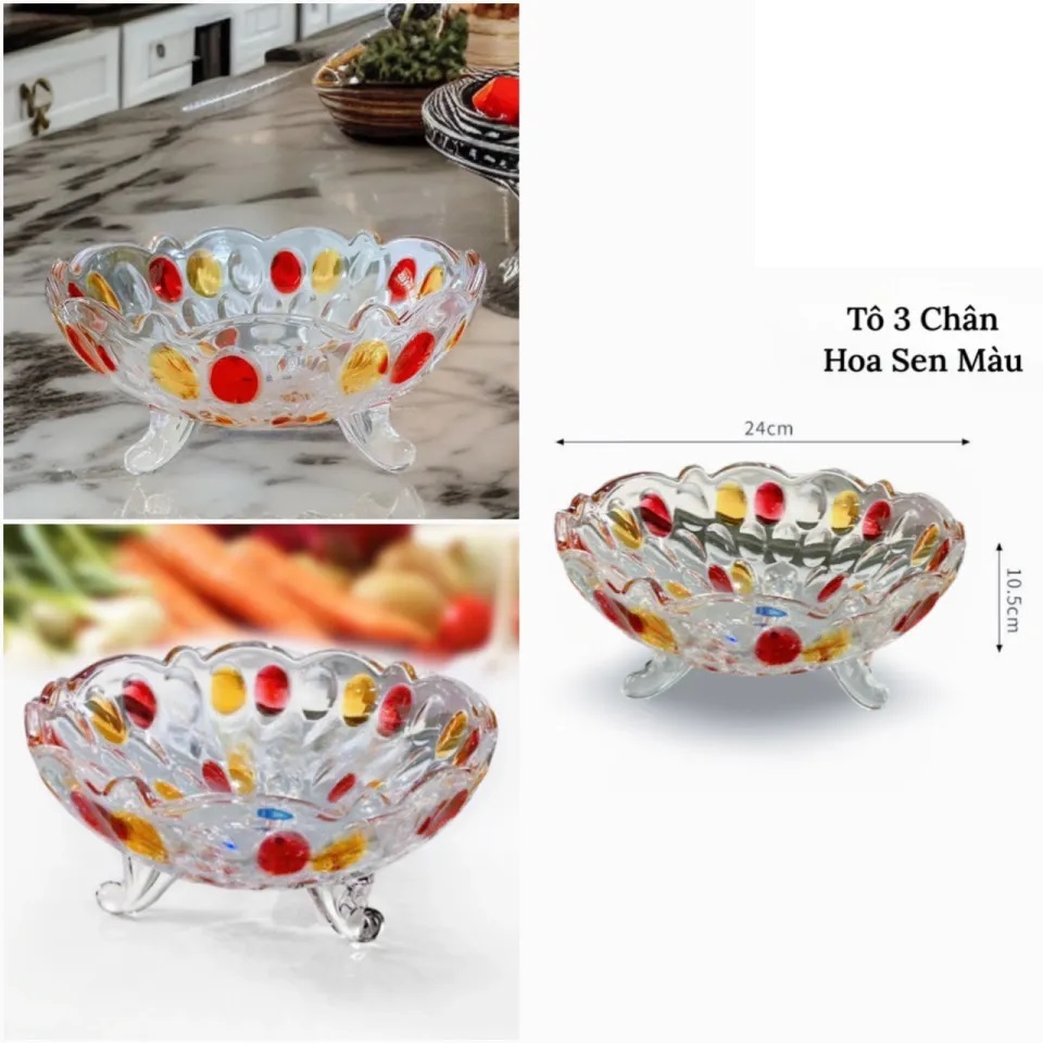 ĐĨA THỦY TINH MÀU ĐỎ 3 CHÂN 24CM