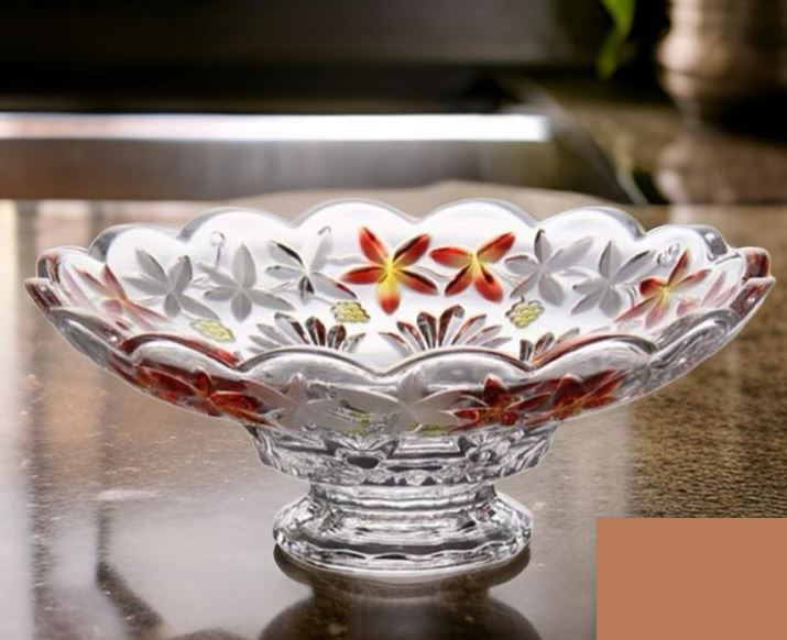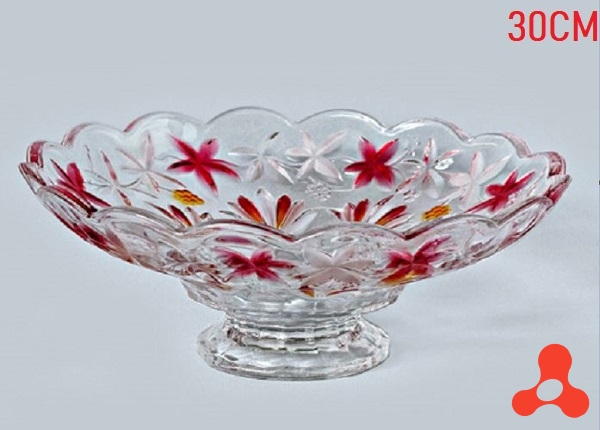 ĐĨA THUỶ TINH MÀU ĐỎ 30CM CÓ CHÂN