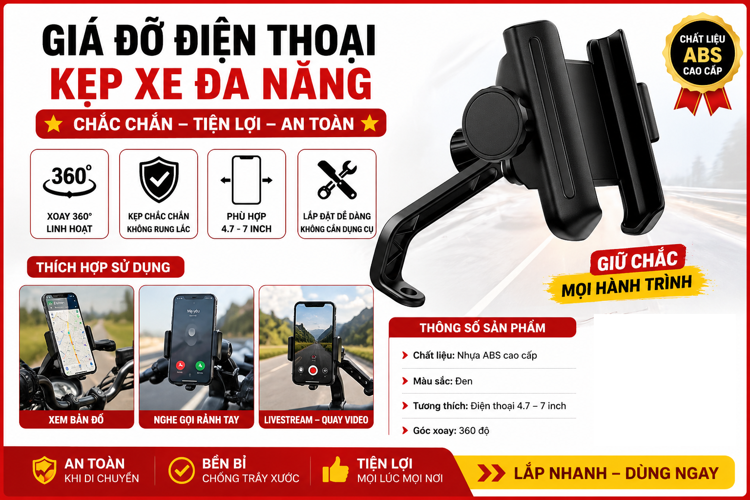 GIÁ ĐỠ ĐIỆN THOẠI KẸP XE MÁY – TIỆN LỢI, CHẮC CHẮN, AN TOÀN KHI DI CHUYỂN