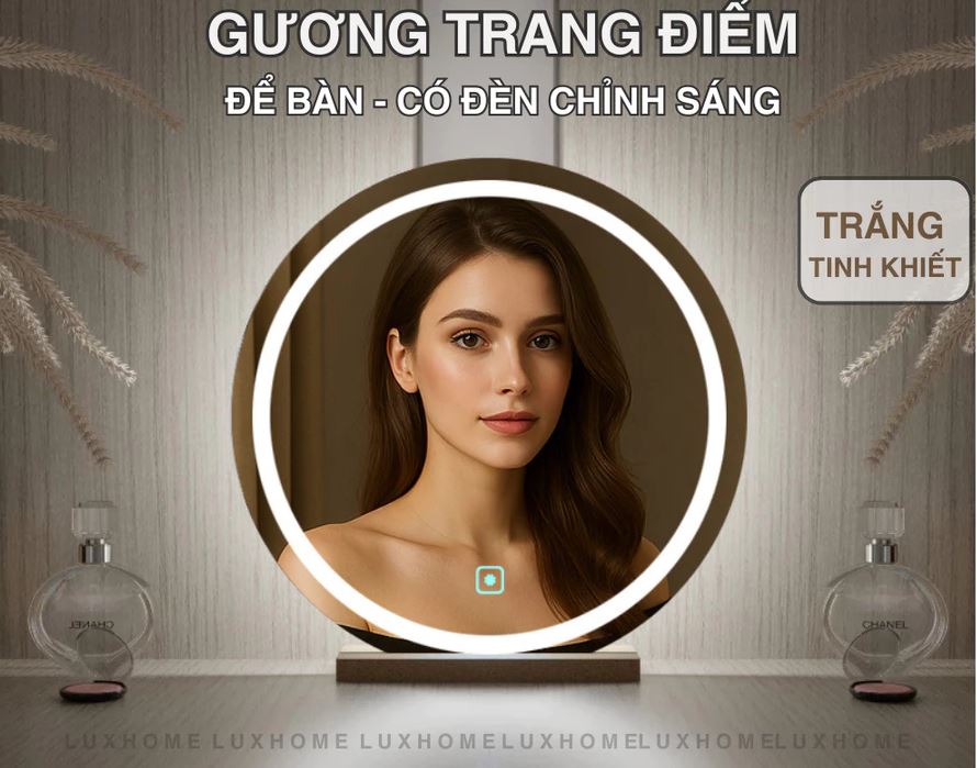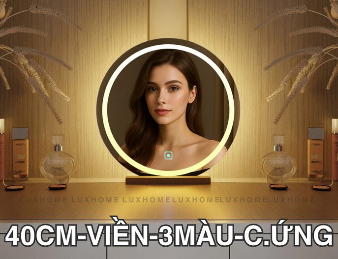 Gương trang điểm LED tròn đường kính 40cm là lựa chọn hoàn hảo cho bàn trang điểm hiện đại. Thiết kế sang trọng, tích hợp đèn LED viền giúp cung cấp ánh sáng chuẩn, hỗ trợ make-up, skincare và chụp ảnh cực đẹp.