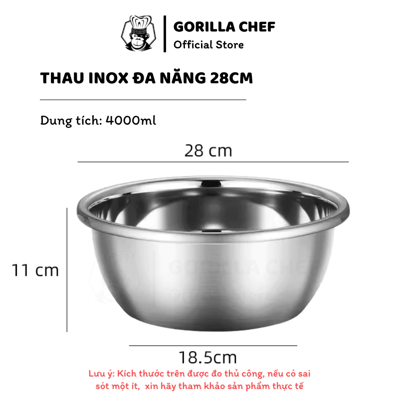 Chỉ với bộ thau inox cao cấp Gorilla Chef, các bạn có thể sử dụng như một chiếc chậu rửa rau hoặc trái cây khi mua kèm rổ/rá, dùng để đựng mọi thứ.