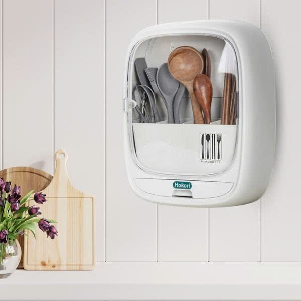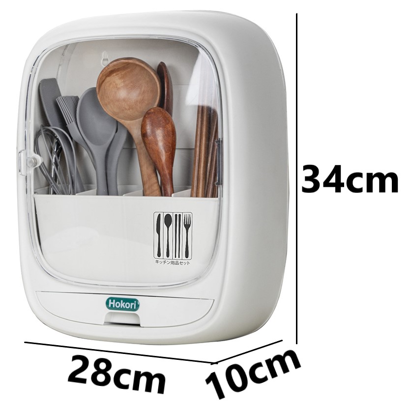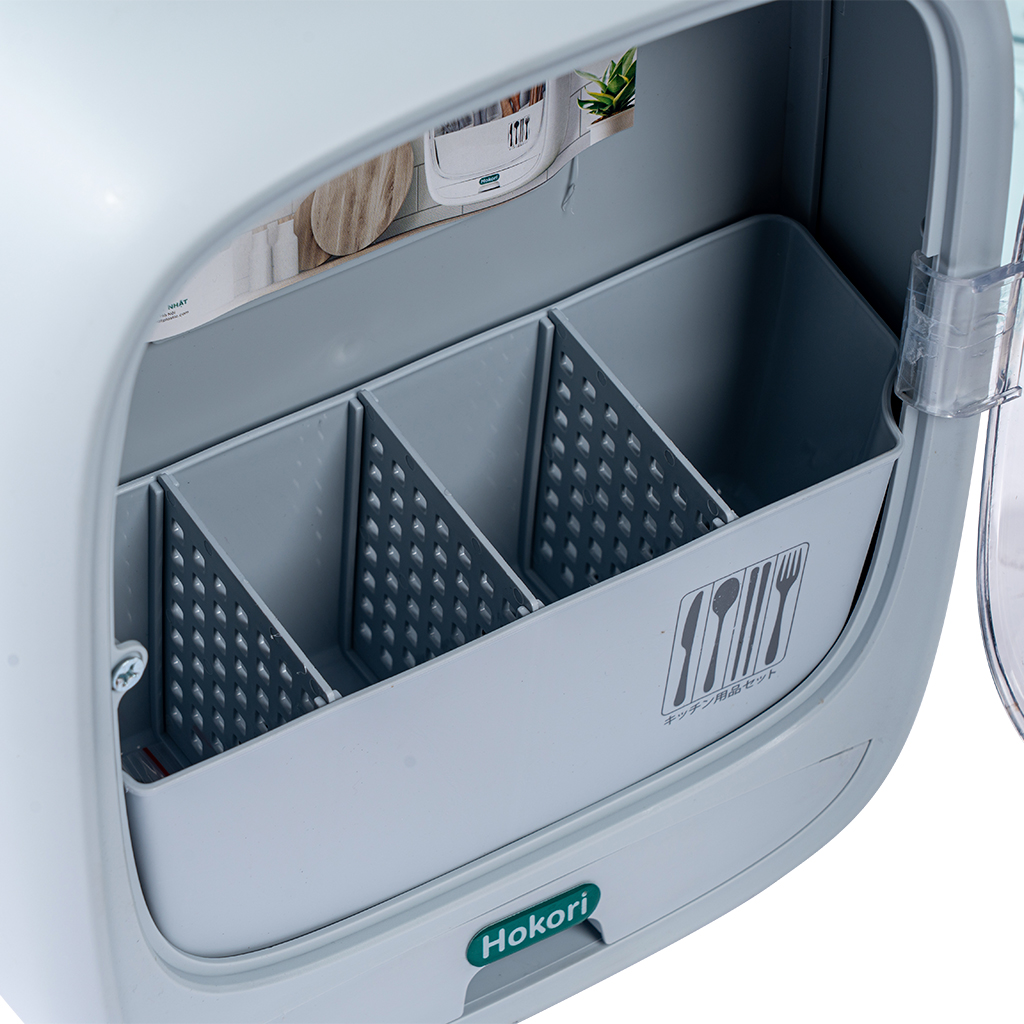 - Kệ đựng đũa thìa Hokori có nắp đậy trong suốt tránh bụi và vi khuẩn, chia làm 4 ngăn để phân loại đũa, thìa và các dụng cụ nhà bếp ngăn nắp, thuận tiện khi sử dụng