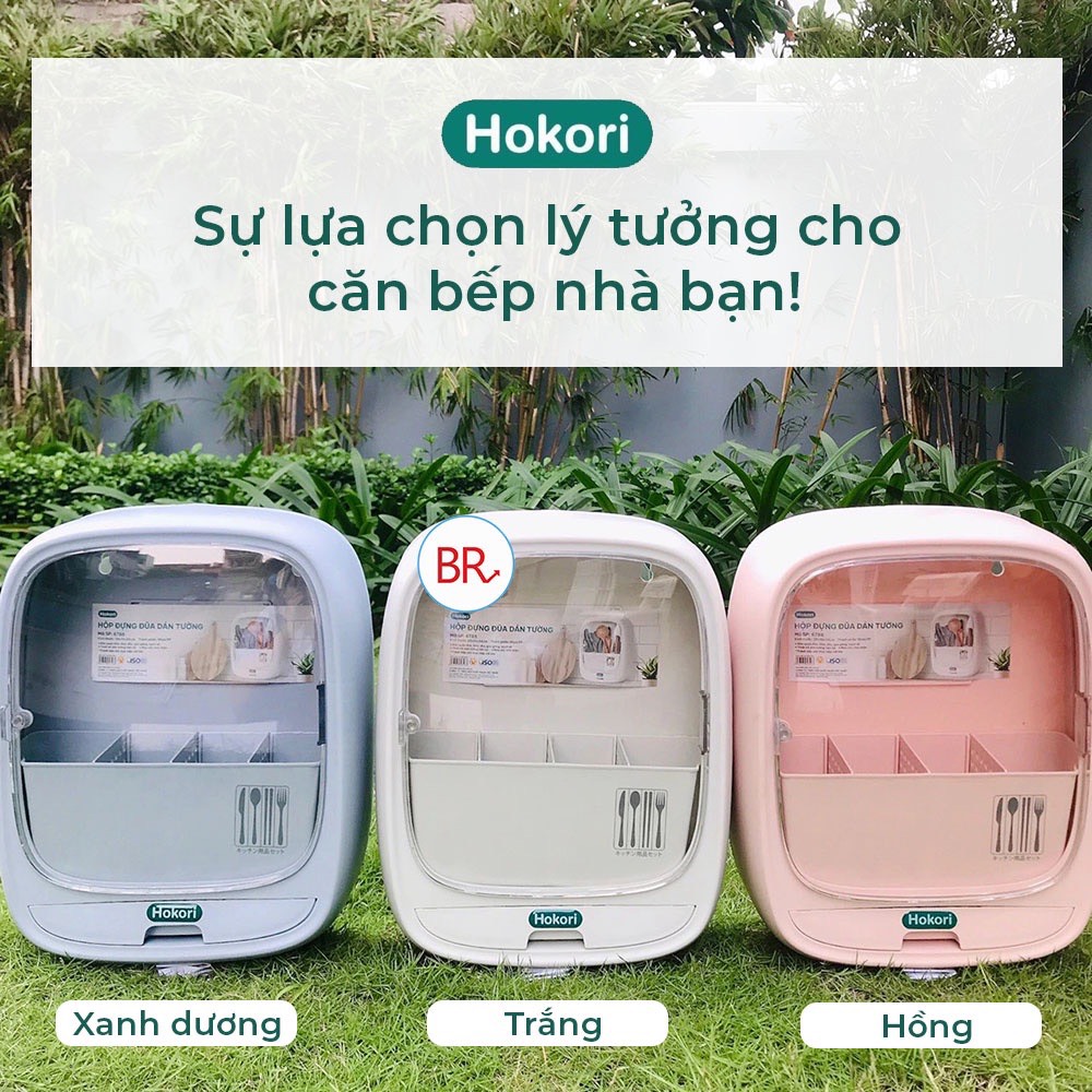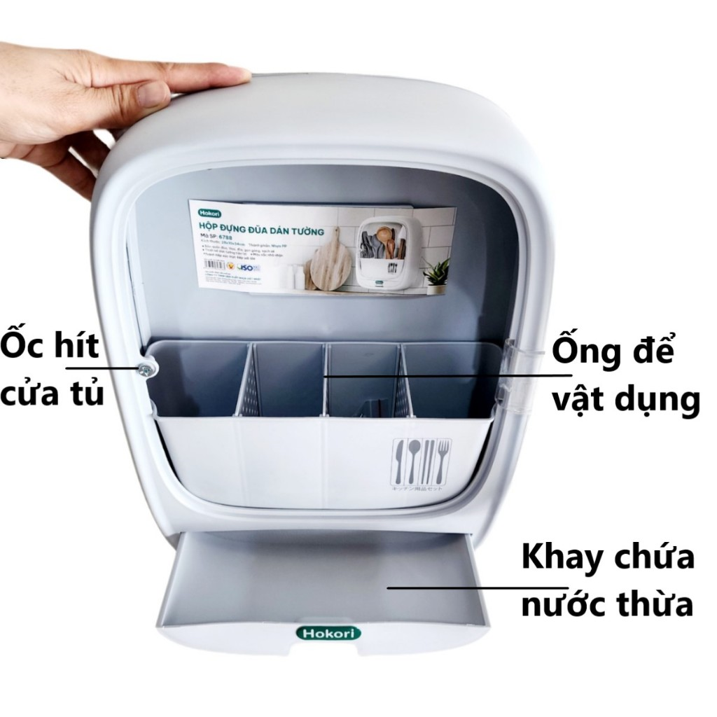 Hộp đựng đũa thìa dán tường Hokori Việt Nhật có nắp đậy 4 ngăn, kệ đựng đũa thìa, ống cắm đũa (MS: 6788)