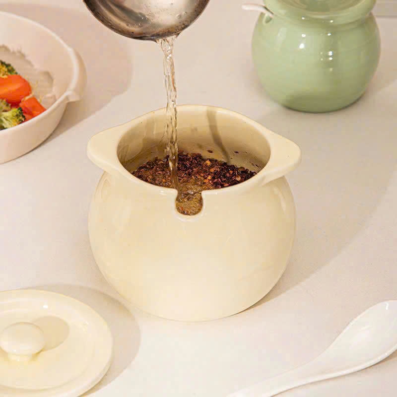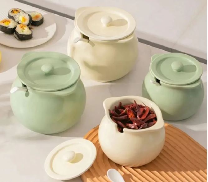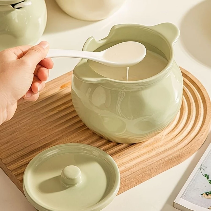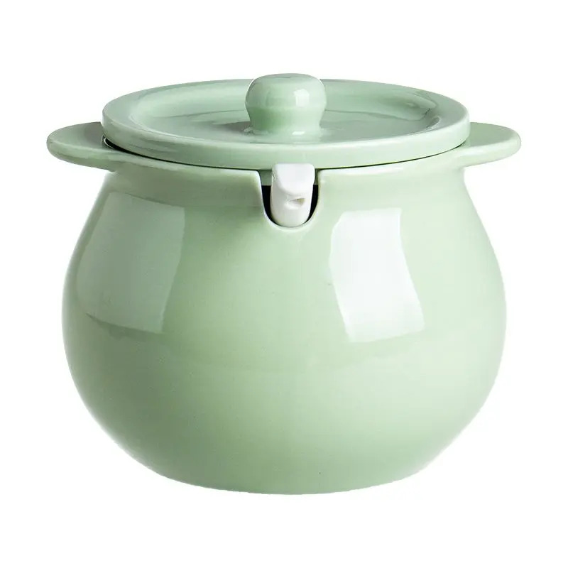 HỦ ĐỰNG MỠ SỨ XANH CÓ TAI CẦM KÈM MUỖNG 700ML (T32)