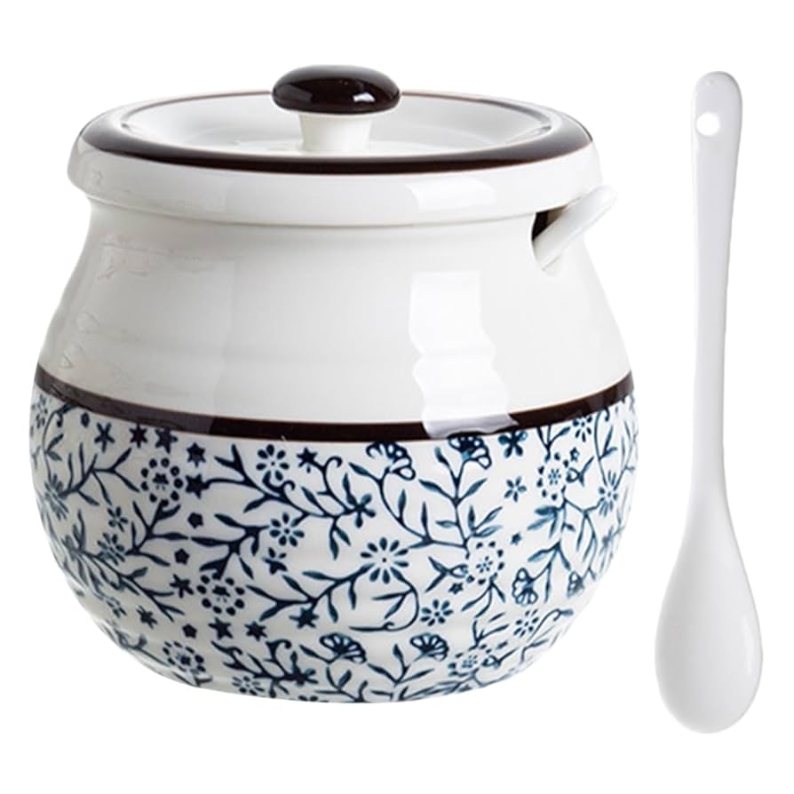 • HỦ SỨ ĐỰNG MỠ BẦU HÌNH HOA KÈM MUỖNG 1200ML