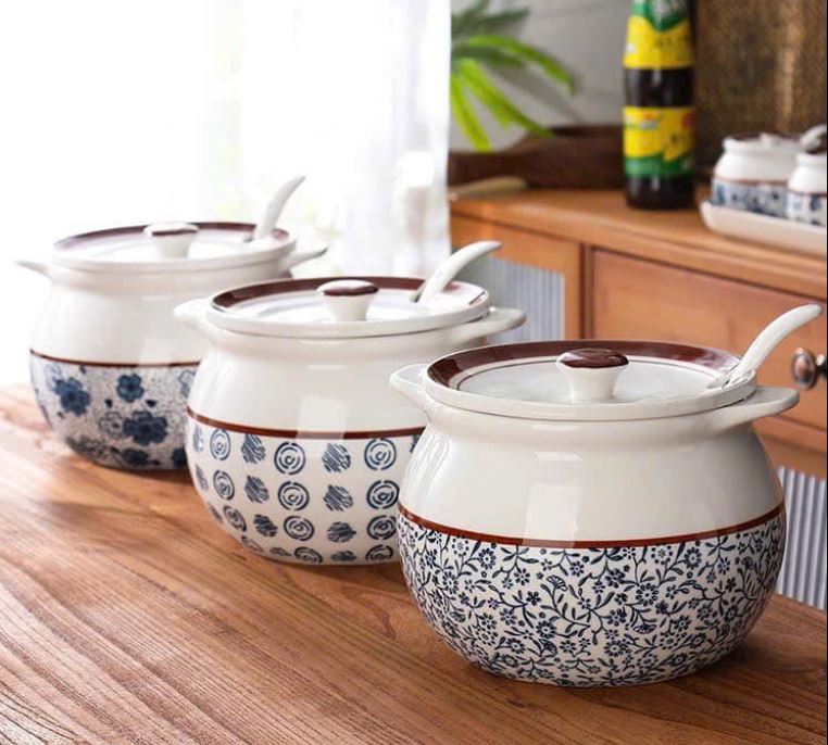 HỦ SỨ ĐỰNG MỠ BẦU HÌNH HOA KÈM MUỖNG 1200ML