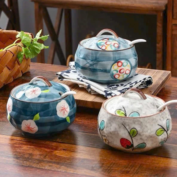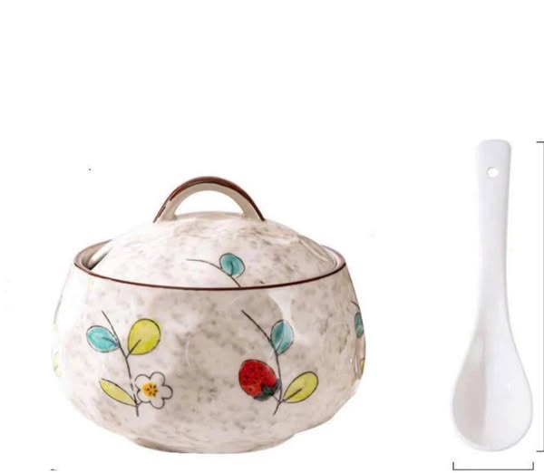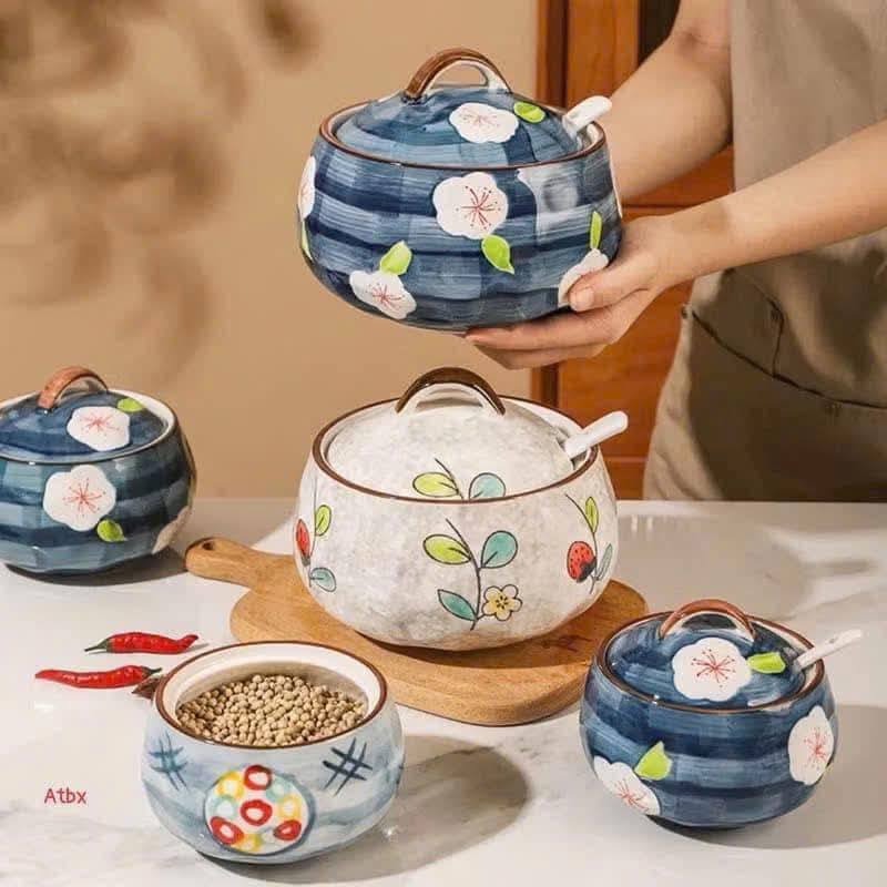 • HỦ SỨ TRẮNG ĐỰNG MỠ HÌNH HOA KÈM THÌA 1200ML