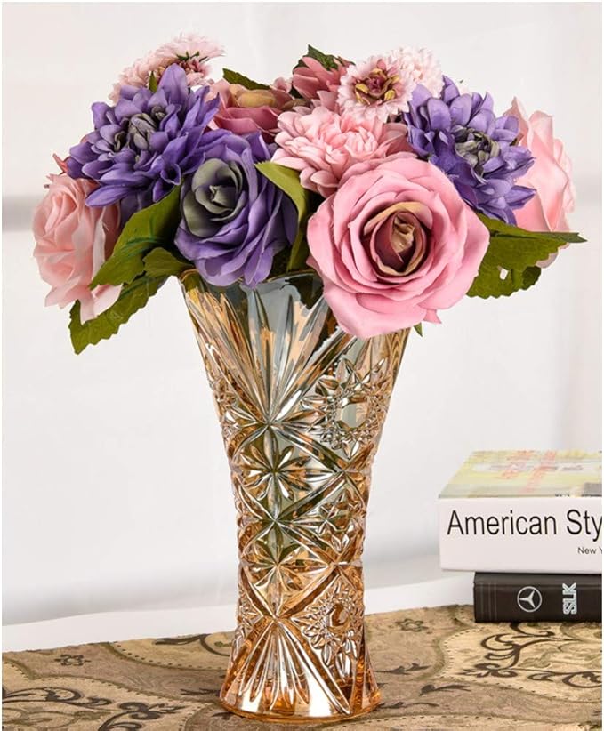 BÌNH CẮM HOA THUỶ TINH VÀNG 30CM HOẠ TIẾT (T12)