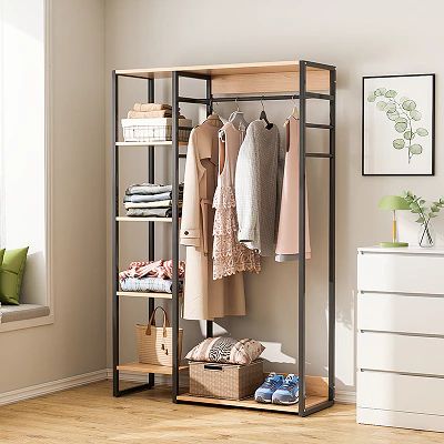 Kệ treo quần áo kèm giá để đồ là giải pháp lưu trữ tiện lợi cho không gian sống hiện đại. Thiết kế kết hợp thanh treo và các tầng kệ giúp bạn dễ dàng treo quần áo và sắp xếp đồ dùng gọn gàng.