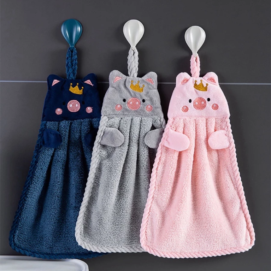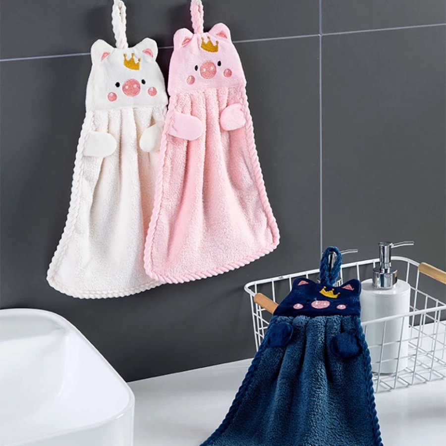 những cái khăn thấm lau tay xinh đẹp với hình thêu heo hoạt hình.