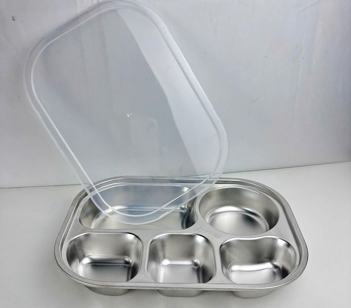 KHAY CƠM 5 NGĂN INOX TRÒN CÓ NẮP