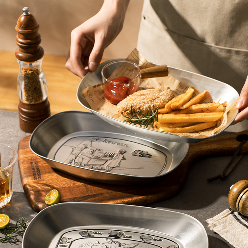 Đĩa Thiếc Đựng Đồ Siêu Nhẹ - Khay Đựng Đồ Ăn, Trái Cây, Bánh Kẹo Phong Cách Retro