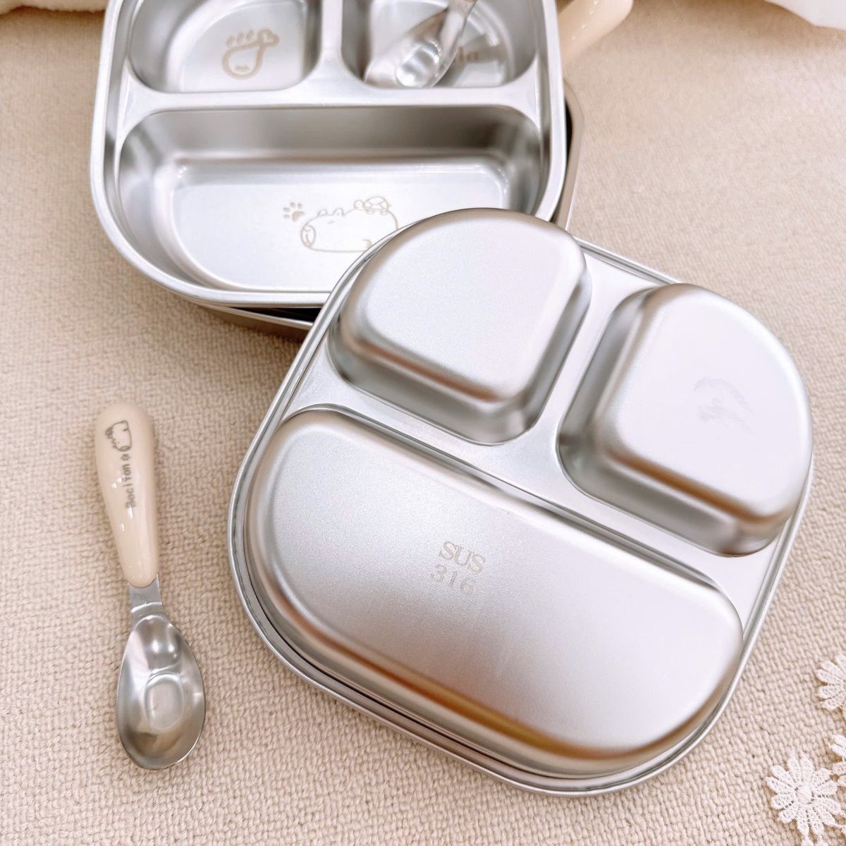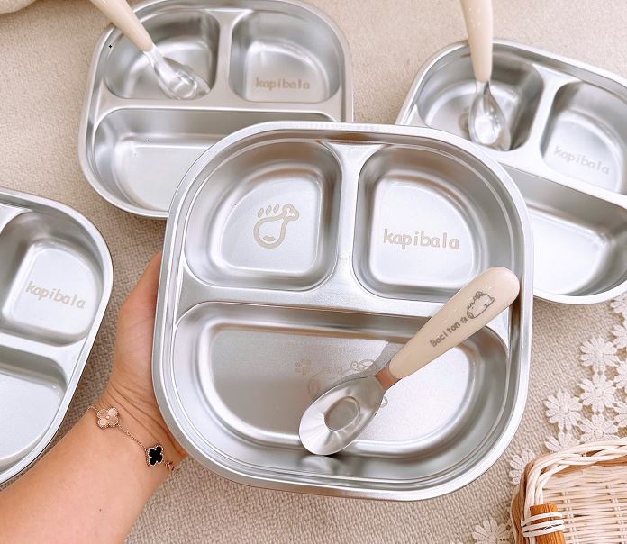 KHAY INOX 3 NGĂN ĂN DẶM CHO BÉ KÈM MUỖNG