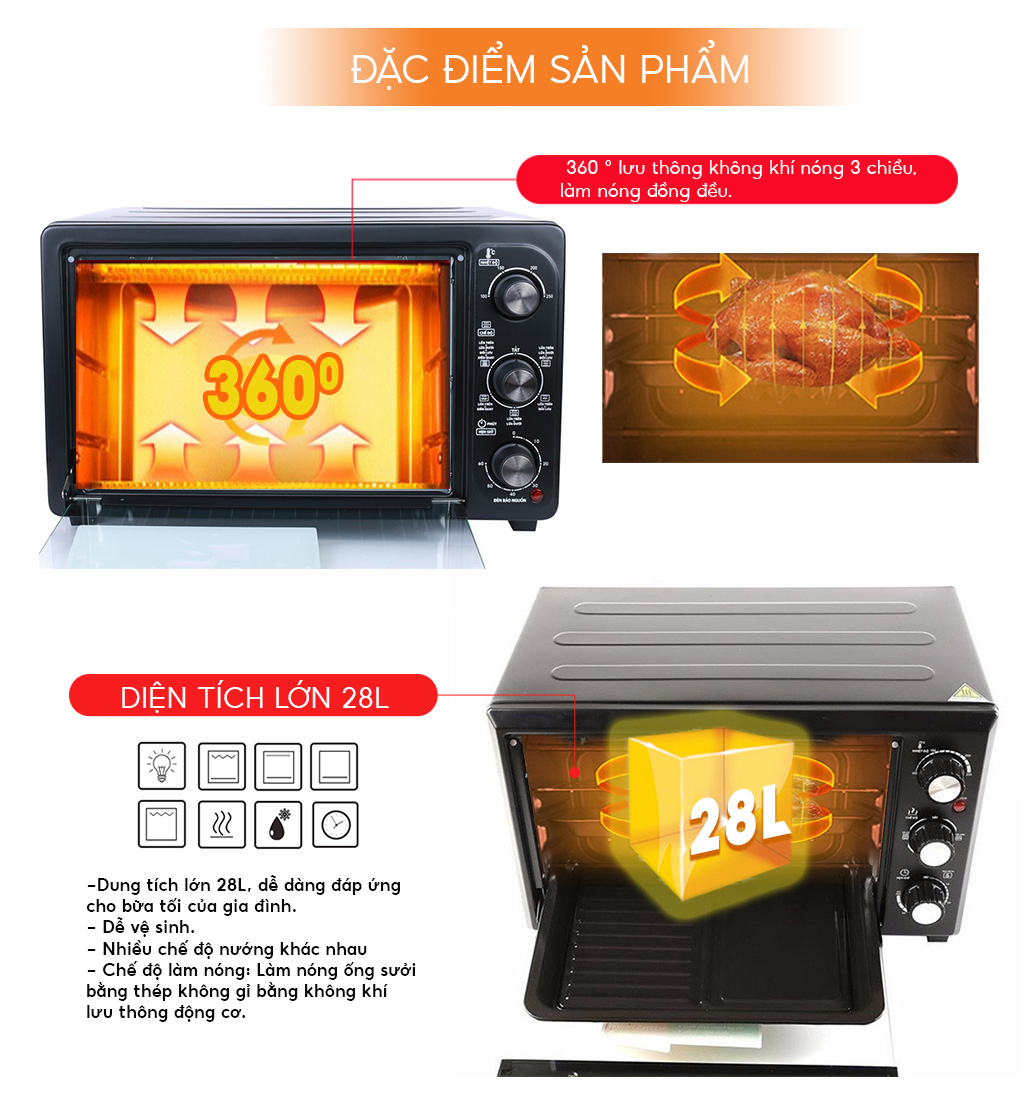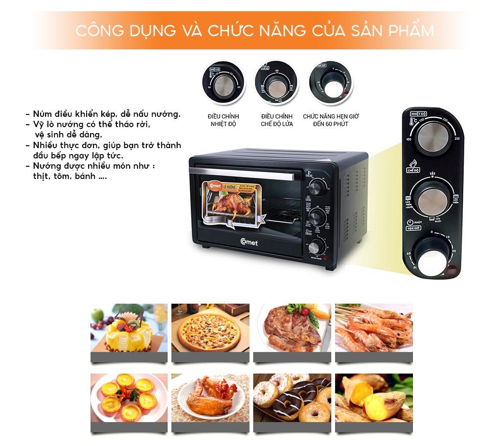 MÔ TẢ SẢN PHẨM LÒ NƯỚNG 28L COMET CM-6518