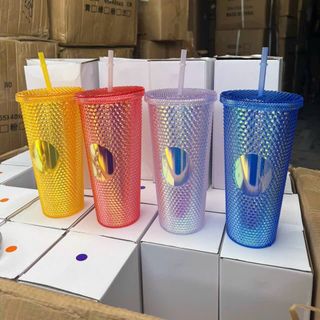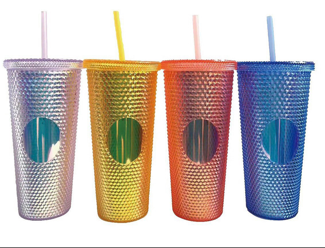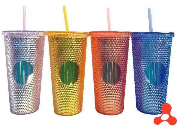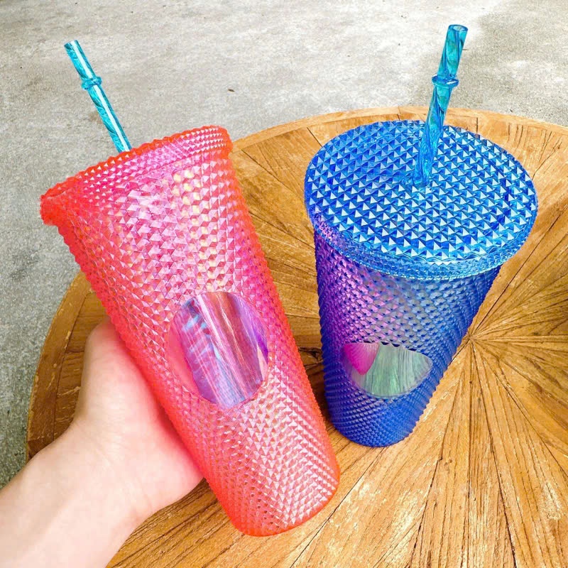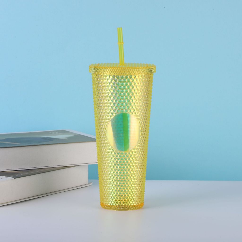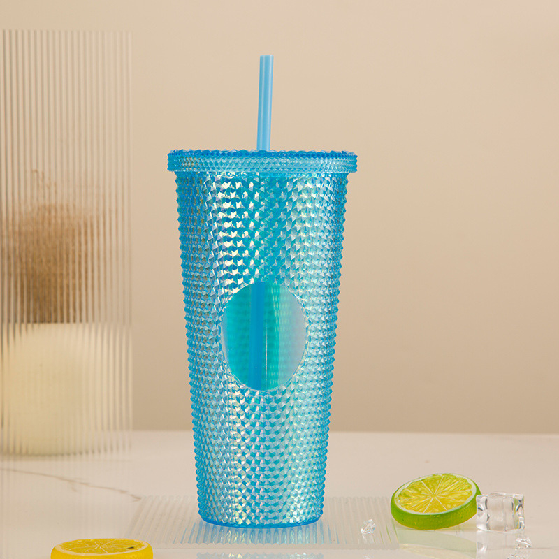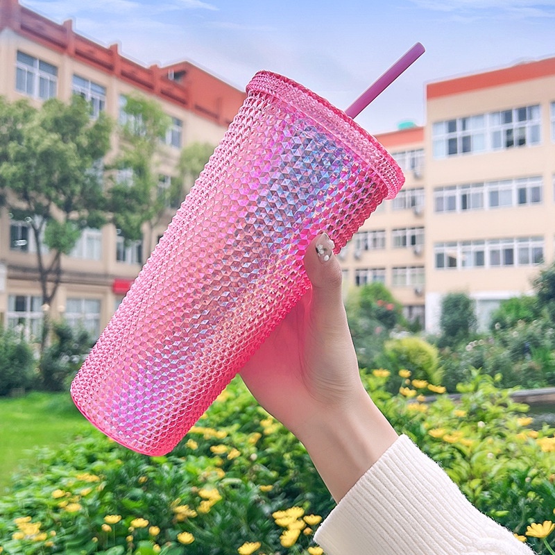 Ly Kim Cương Nhựa 2 Lớp Có Ống Hút Dung Tích 700ml Nhựa PP An Toàn Cho Sức Khỏe