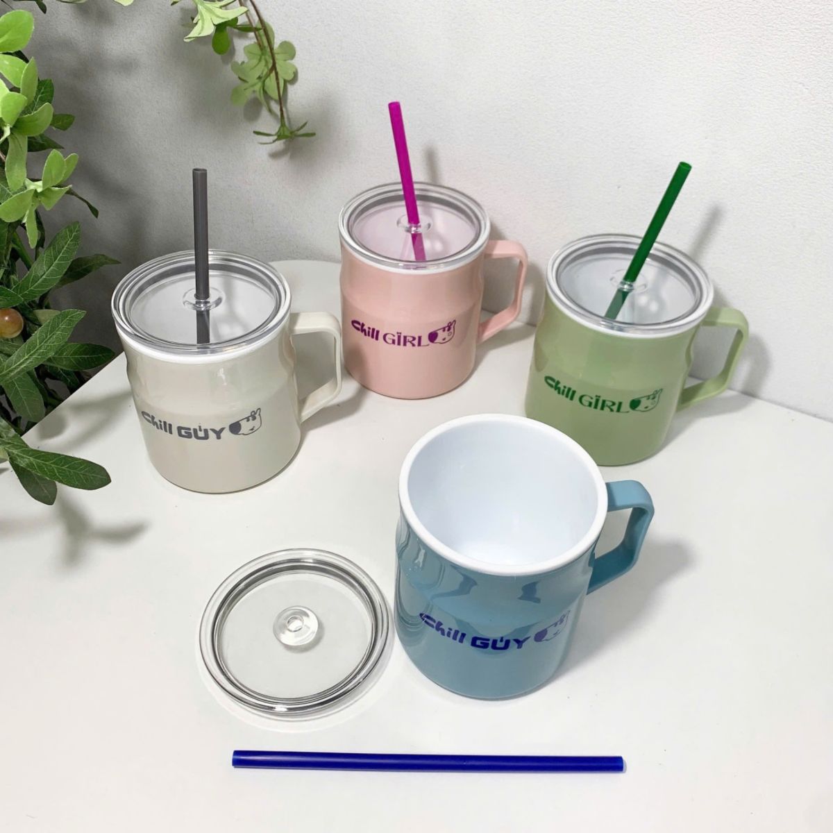 LY THUỶ TINH 340ML CÓ NẮP CHỐNG TRÀN KÈM ỐNG HÚT (T58)