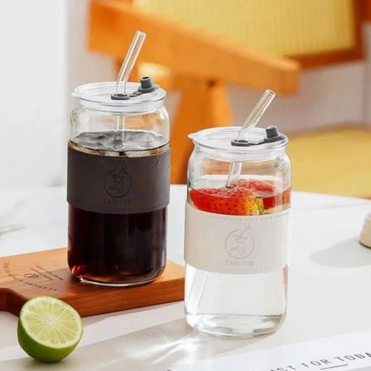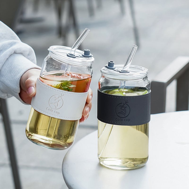 LY THUỶ TINH BỌC DA COLA CUP 500ML KÈM ỐNG HÚT (T70)
