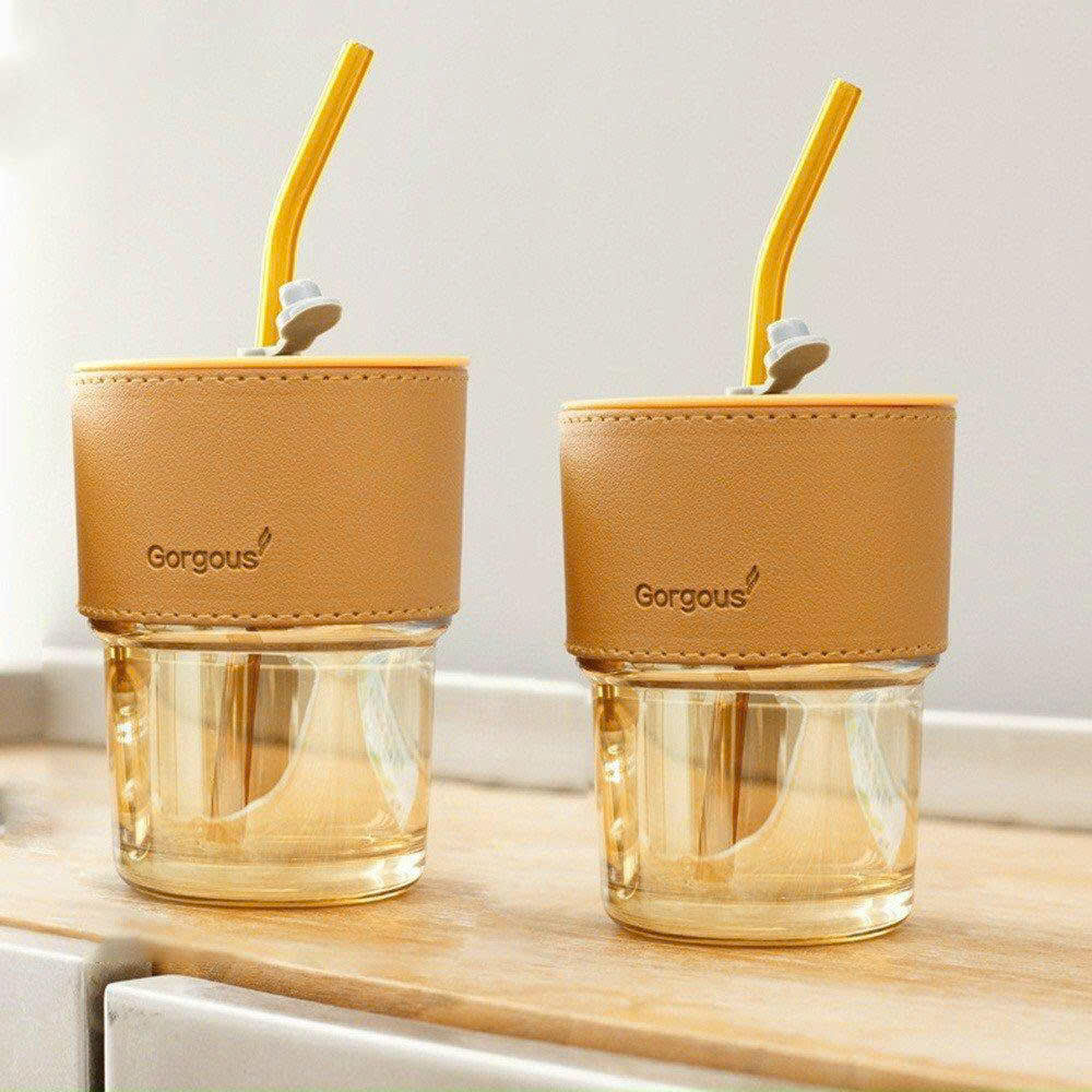 LY THỦY TINH BỌC DA KÈM ỐNG HÚT 450ML