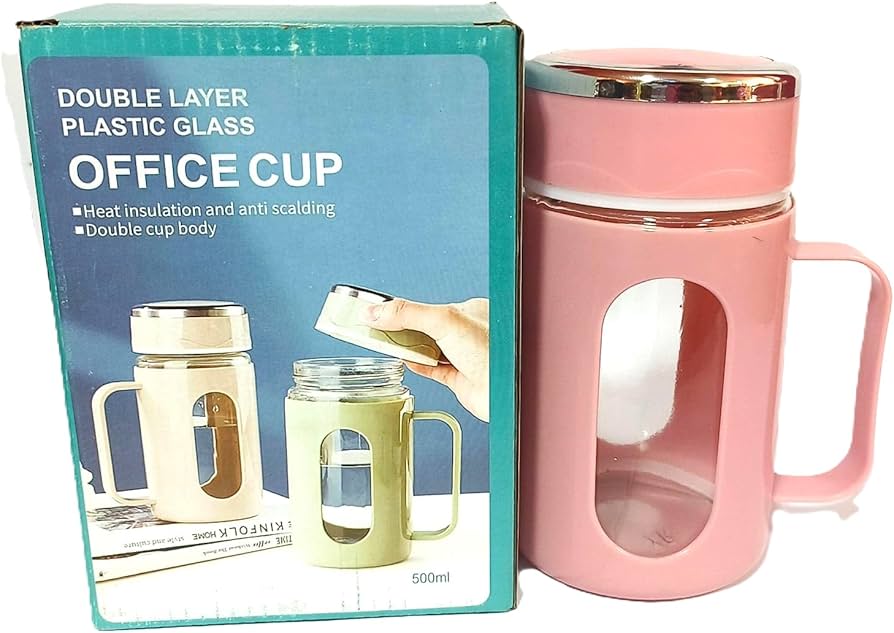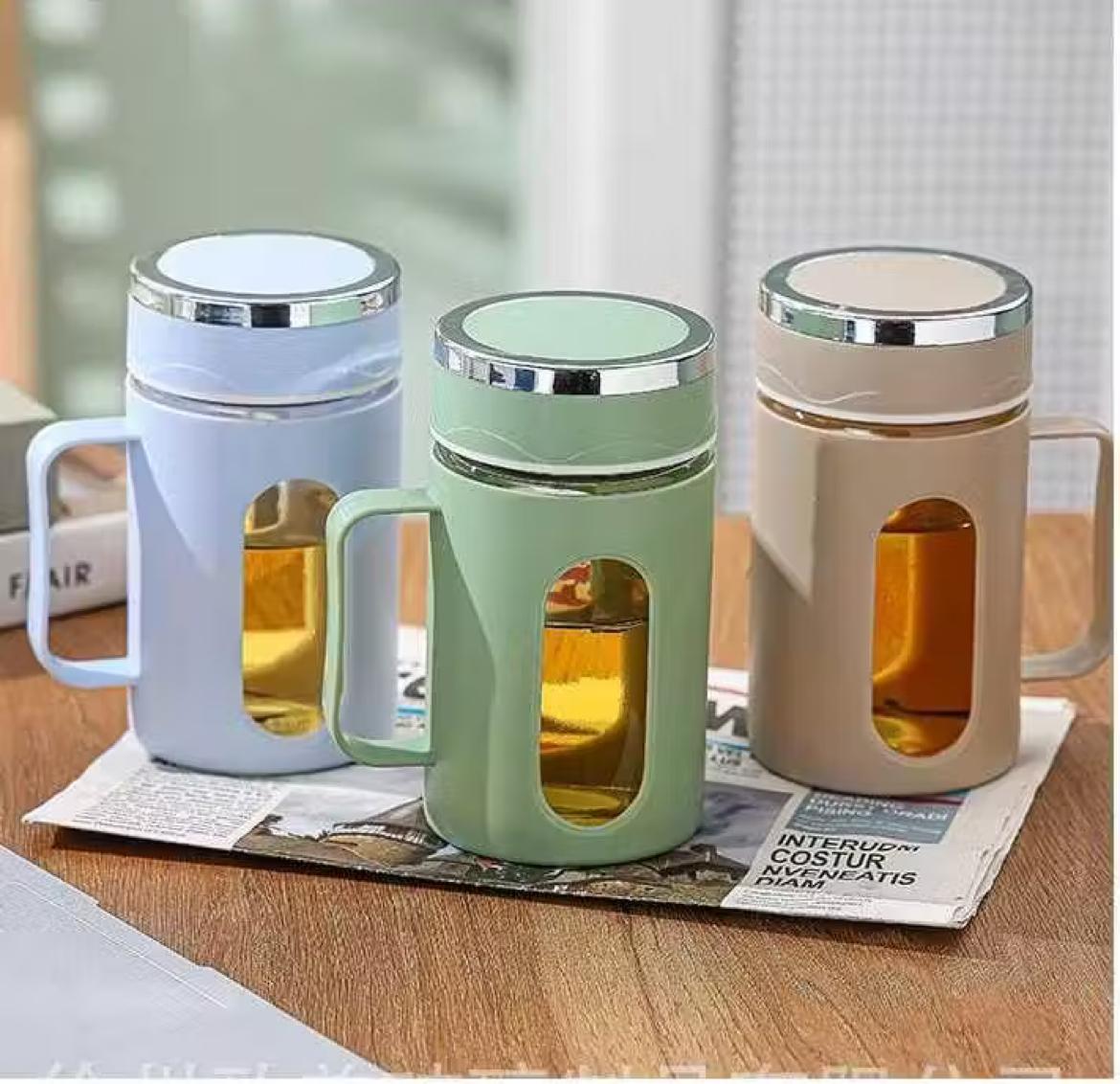 LY THỦY TINH BỌC NHỰA QUAI CẦM 500ML (T60) - cup uống trà , uống cafe , uống sinh tố / làm quà tặng
