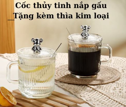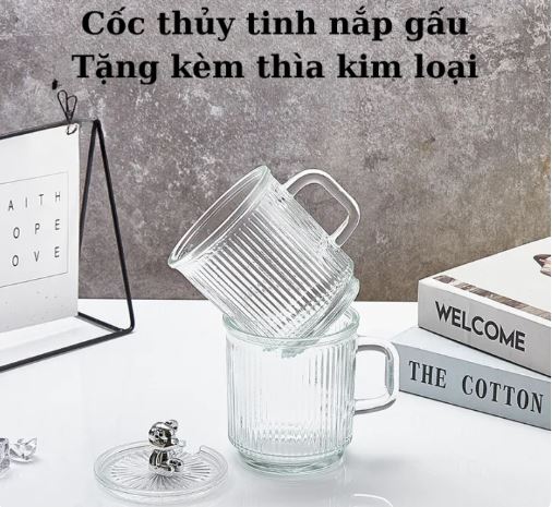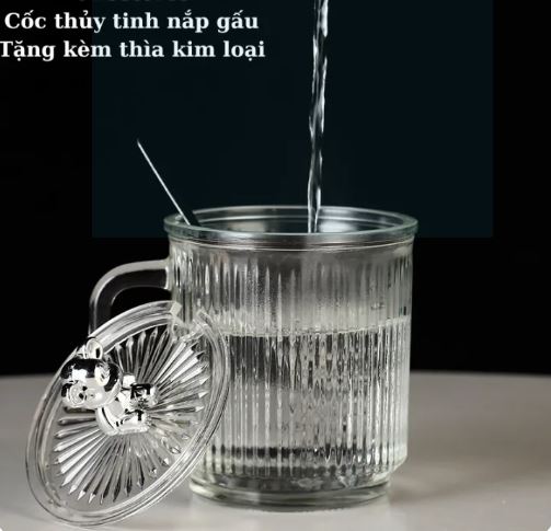 LY THỦY TINH VÂN SỌC 500ML NẮP GẤU KÈM MUỖNG (T72)