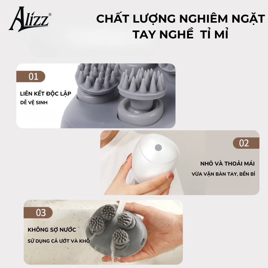 Massage Đa Năng Cho Da Đầu Và Toàn Thân: Với thiết kế đầu massage linh hoạt và công nghệ silicon mềm mại, ALIZZ AL-14003 có thể sử dụng cho cả da đầu và các bộ phận khác trên cơ thể. Máy giúp bạn giảm căng thẳng, thư giãn cơ thể và kích thích các điểm huyệt hiệu quả.