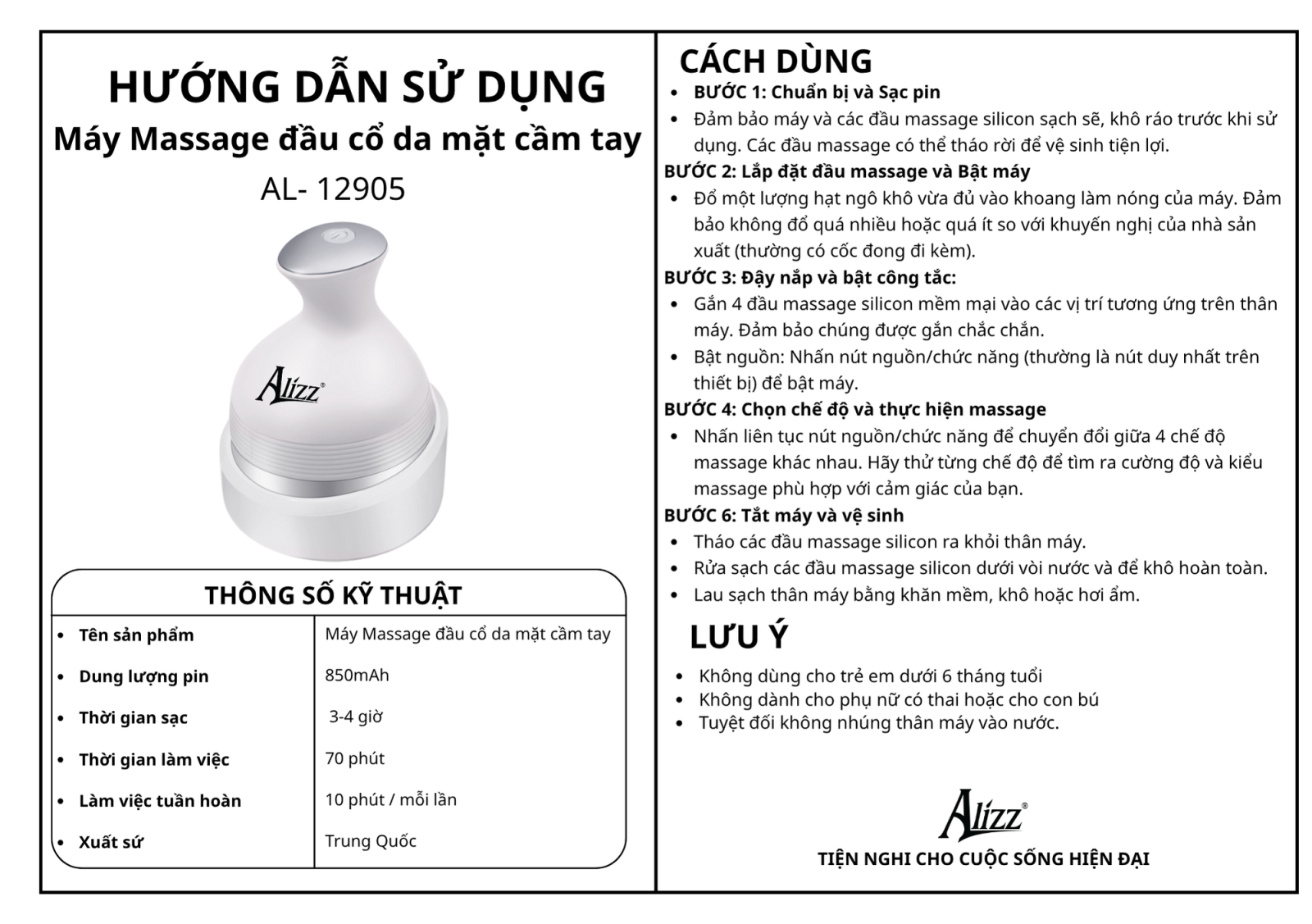 MÁY MASSAGE ĐẦU CẦM TAY ALIZZ AL-12905