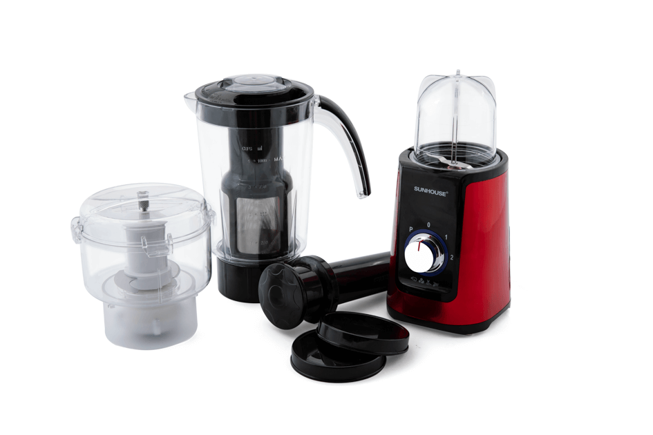 Máy xay sinh tố đa năng SUNHOUSE SHD5322 có thiết kế hiện đại với một cối xay sinh tố kèm lưới lọc bã và 1 thanh đẩy giúp bạn xay trái cây được nhanh hơn, sánh mịn hơn. Bên cạnh đó là 1 cối xay thực phẩm khô và 1 cối xay thịt, đáp ứng mọi nhu cầu làm bếp của bạn.