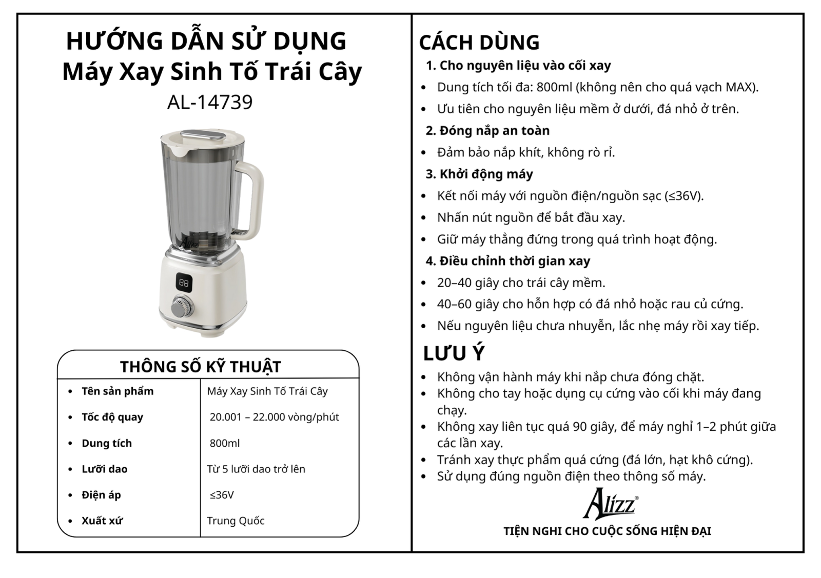 MÁY XAY SINH TỐ TRÁI CÂY ALIZZ AL-14739