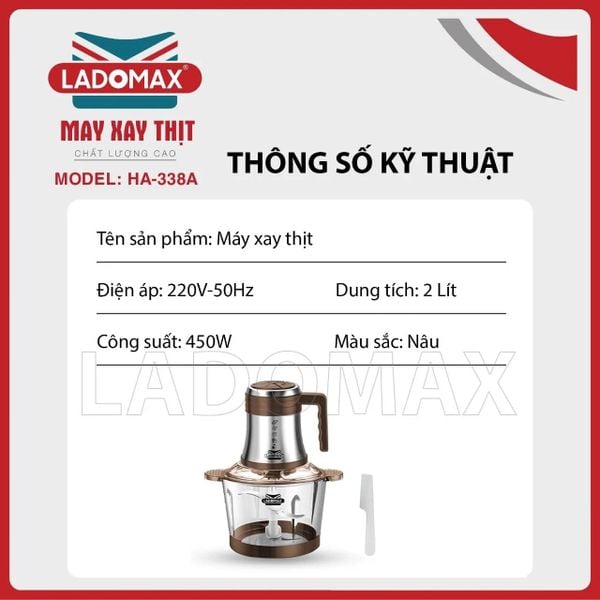 Máy xay thịt 2 Lít Ladomax HA‑338 – Thiết bị bếp đa năng, sức mạnh tối ưu