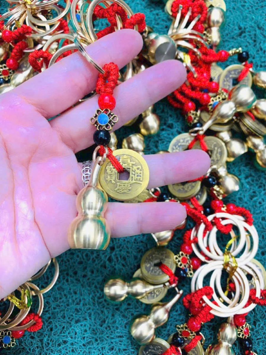 MÓC KHOÁ HỒ LÔ VÀ 5 ĐỒNG XU PHONG THUỶ MAY MẮN