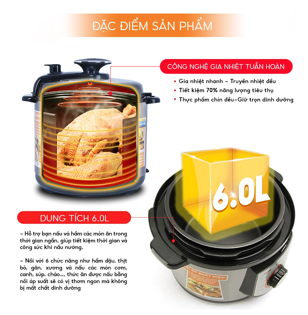 Nồi áp suất CM6151 - Dung tích 6L là một thiết bị điện gia dụng giúp hỗ trợ người dùng chế biến thực phẩm nhanh chóng mà vẫn đảm bảo độ tươi ngon, rất thích hợp cho các món hầm/ninh bồi bổ sức khỏe mà lại nhanh chóng, tiện lợi.