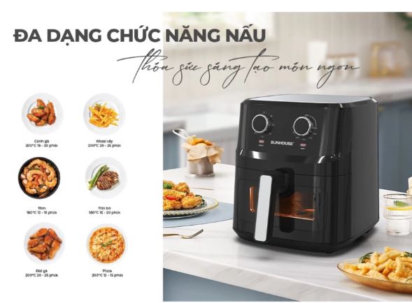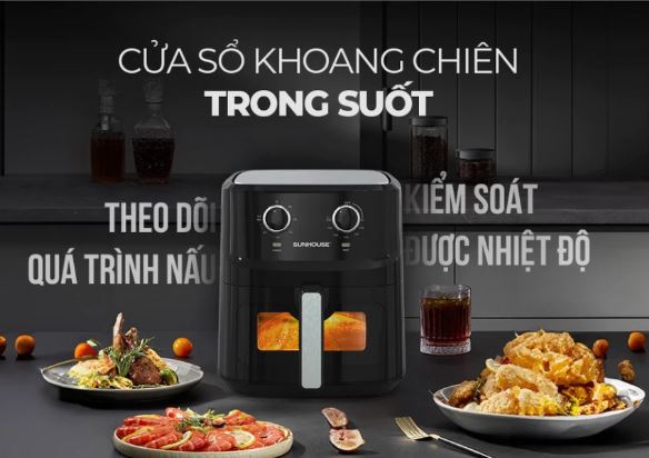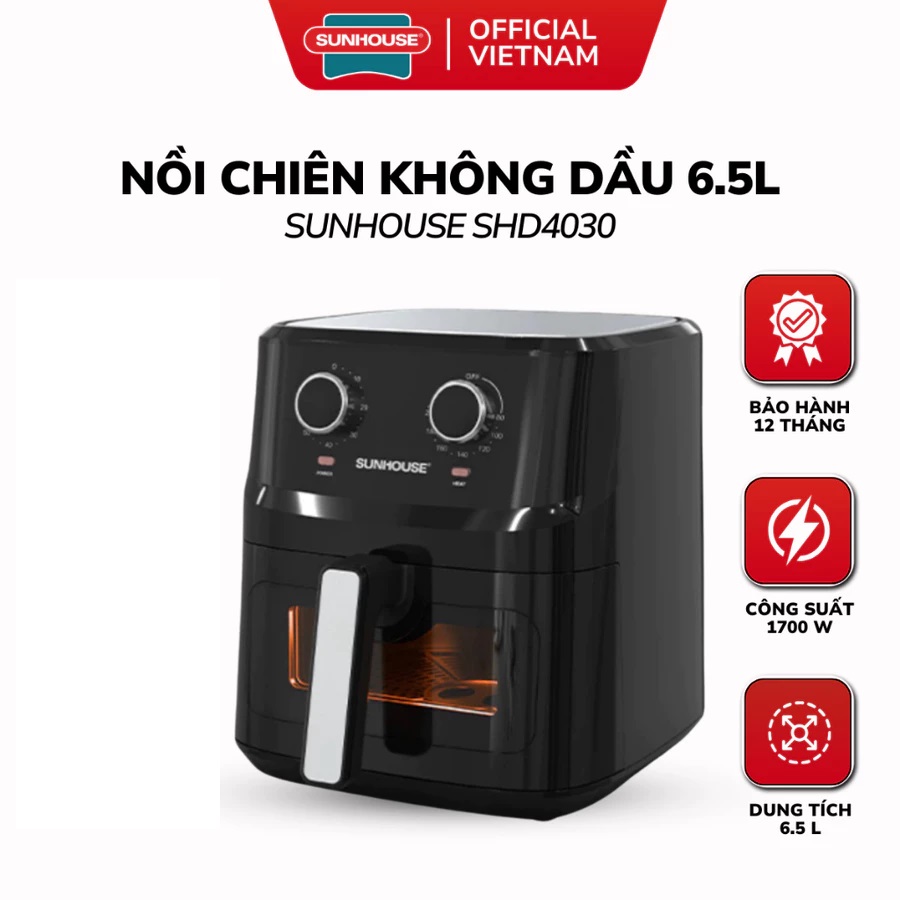 Nồi Chiên Không Dầu SUNHOUSE SHD4030 - 6.5L, 1700W, Chiên Nướng Không Cần Lật, Cửa Kính Trong Suốt