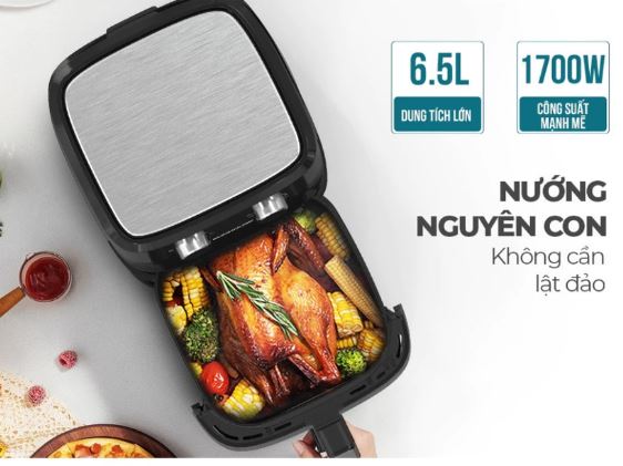 Dung tích: 6.5 Lít (phù hợp nướng gà/vịt nguyên con)
