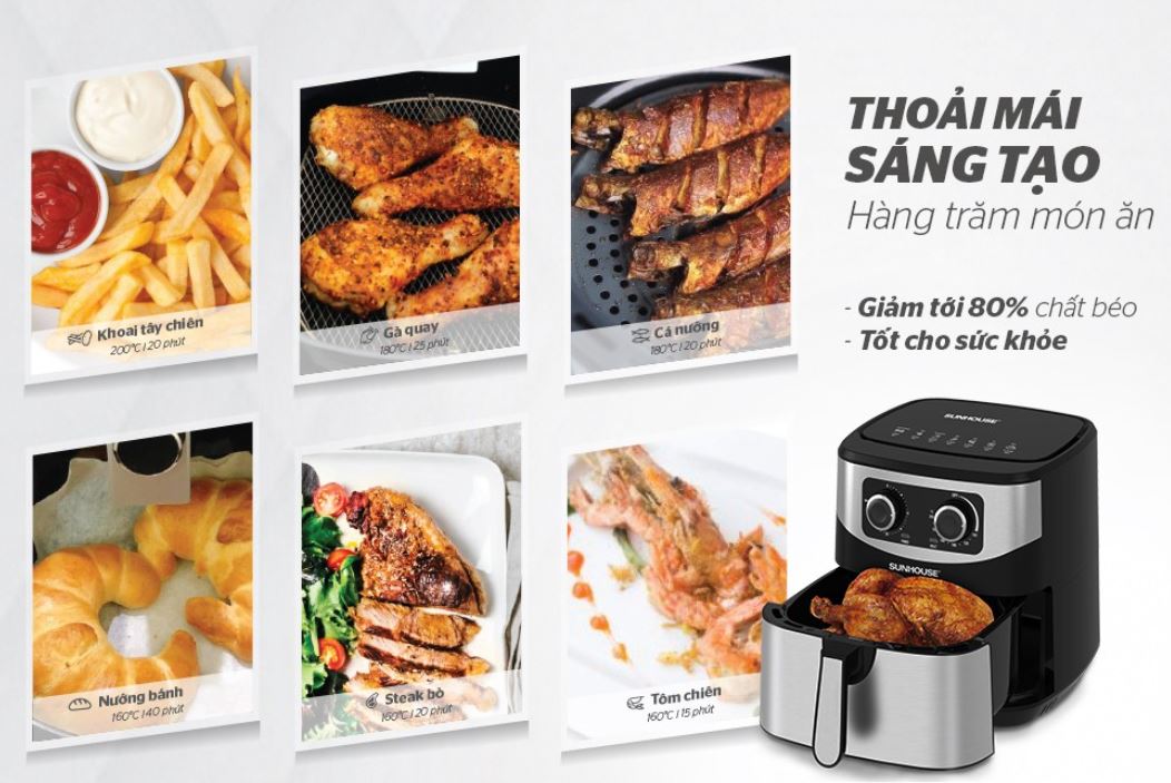 - Đặc điểm khác - Dung tích lớn chiên gà vịt nguyên con