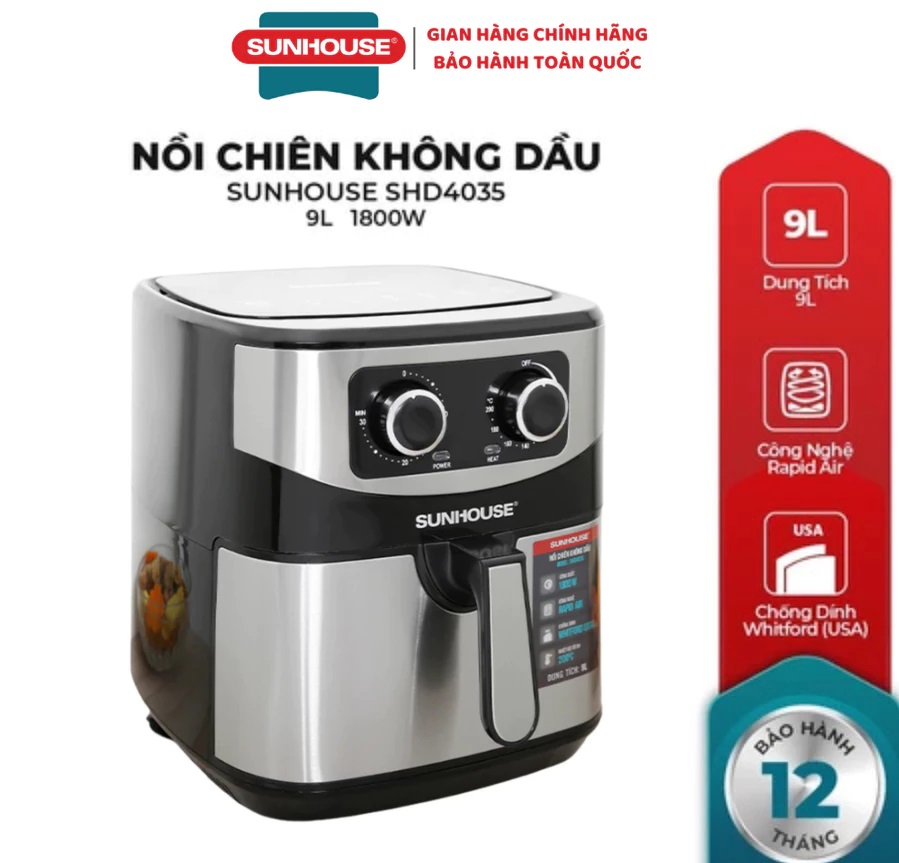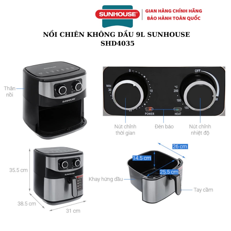 NỒI CHIÊN KHÔNG DẦU 9L SUNHOUSE SHD4035