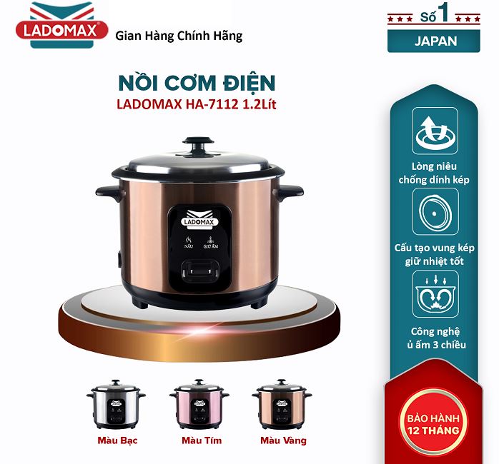 NỒI CƠM ĐIỆN 1,2L NẮP RỜI LADOMAX HA- 7112