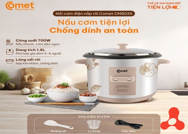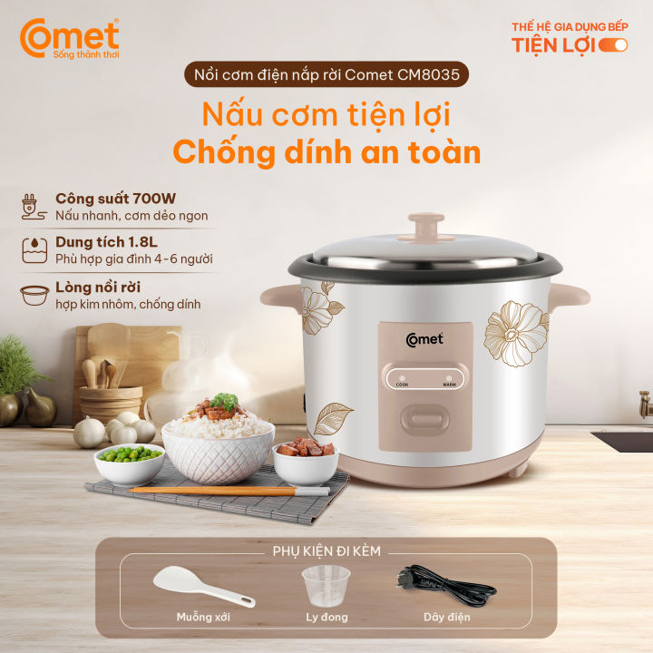 NỒI CƠM ĐIỆN NẮP RỜI 1,8L COMET CM8020