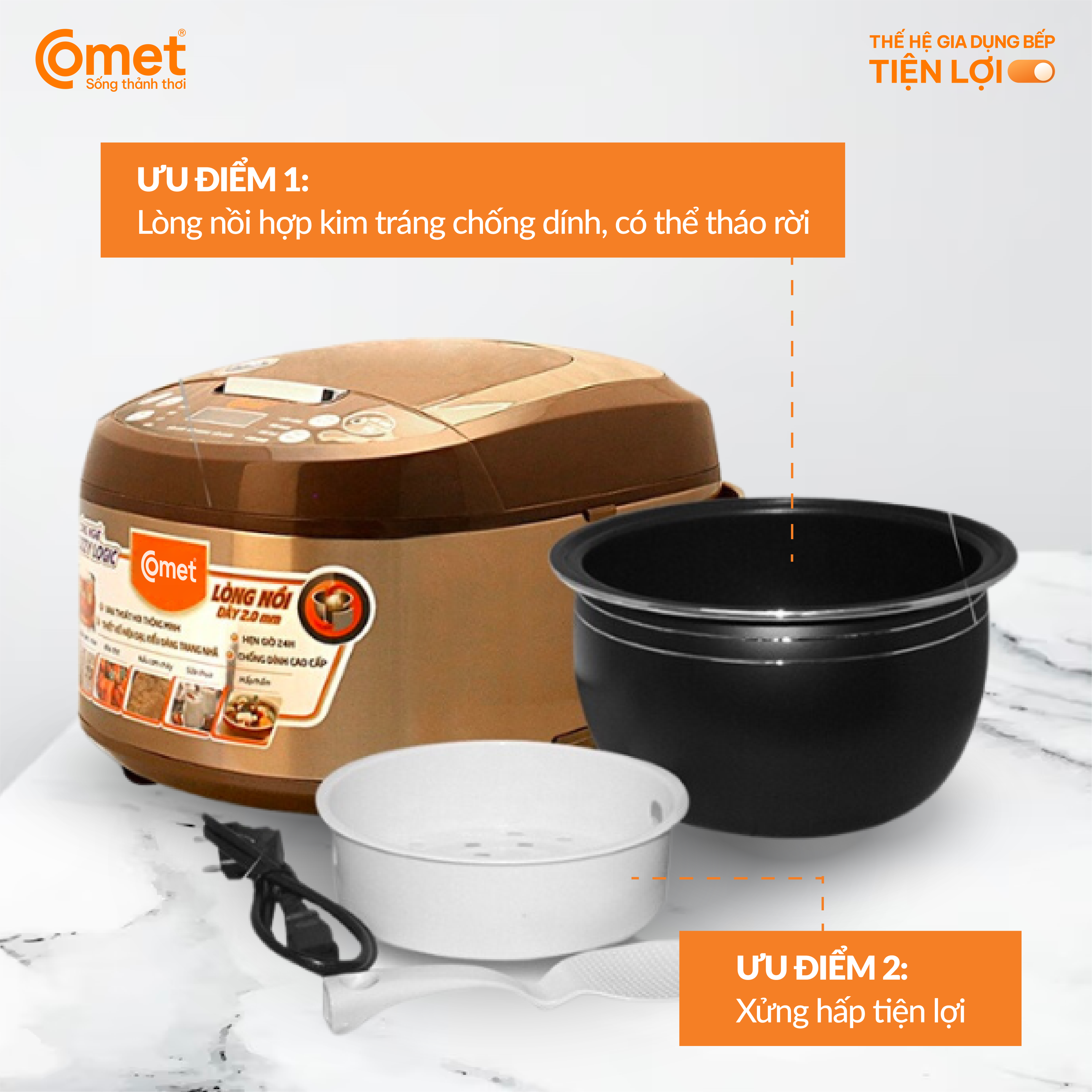 Nồi cơm điện tử đa năng 1.8L COMET Nấu cơm, cháo, kho thịt, làm sữa chua, hấp, hầm