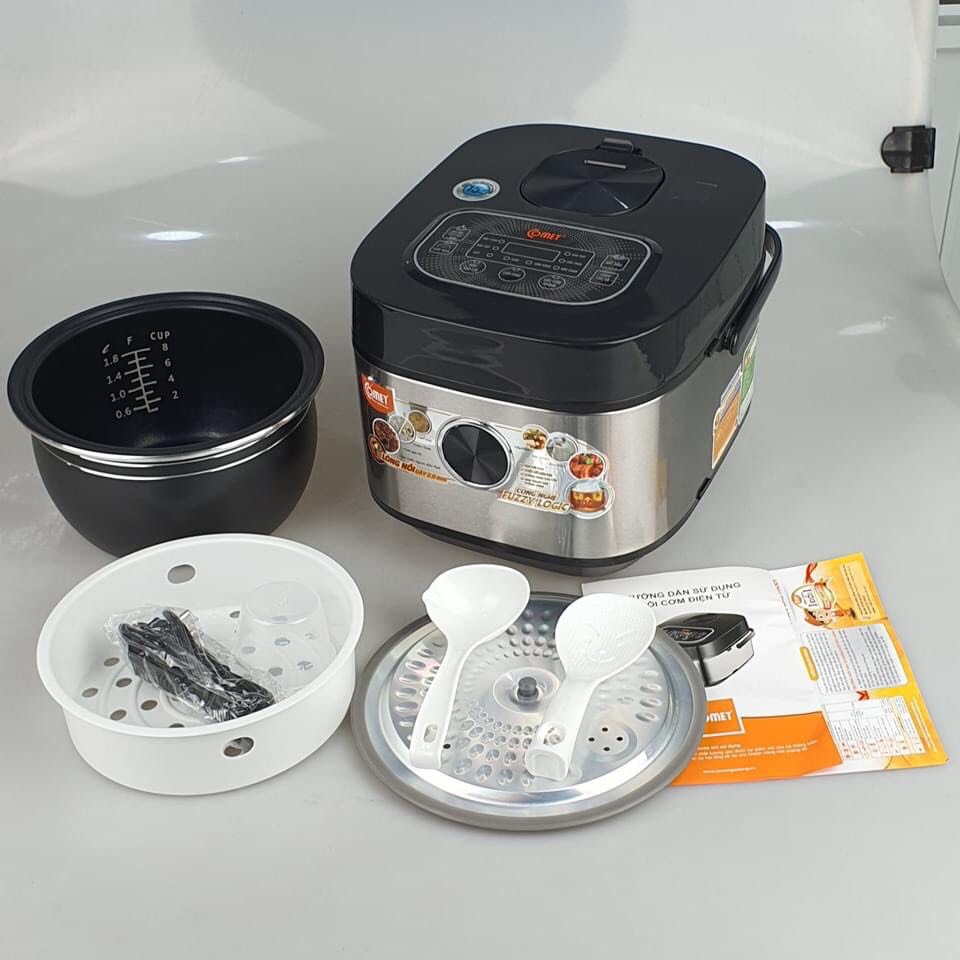 - Nồi cơm điện tử Comet CM8088 được tích hợp nhiều chức năng tiện ích. Không những sản phẩm nấu cơm chín ngon mà nó còn có thể nấu gạo lứt, nấu cháo, kho thịt, nấu cơm cháy, làm sữa chua, hấp/hầm.